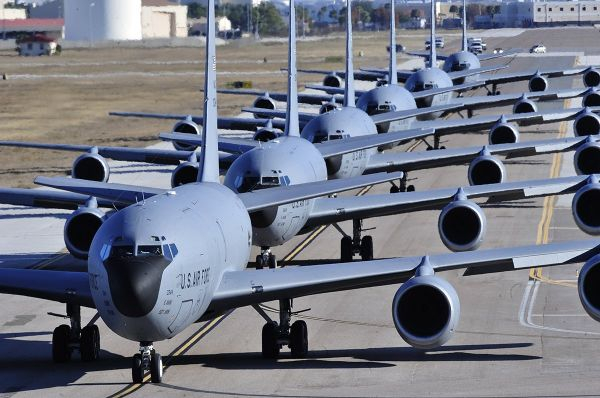 资料图片:美空军KC-135加油机群“象步游行”训练。(图片来源于网络)