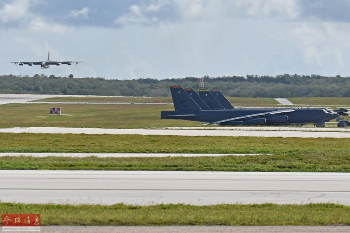 7月28日,数架美空军B-52H战略轰炸机在位于关岛的安德森空军基地降落。美空军透露,这些B-52H常驻于北达科他州的迈诺特空军基地,此次轮换部署是为了继续进行美空军的“持续轰炸机存在”(CBP)任务。