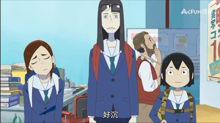 与造型简化相映成趣的是,《别对映像研出手!》里的人物设定也不以数量取胜。贯穿整部动画片的主角只有三人,却表现出了截然不同的个性。
