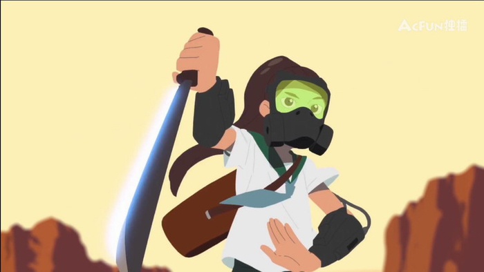 从观众的角度看,汤浅简直是将自己的动画创作当成一个游戏空间,运用一些逻辑结构上的“花招”,使《别对映像研出手!》中的一条普通线性叙事下的故事都能丰满成为一场绚丽的幻境,让观众沉迷其中又回味无穷。其中,给观众留下深刻印象的一幕就是“映像研究同好会”为争取学校学生会认可(及活动经费)而展示自己制作的动画短片《握紧手中的开山刀!》。为了节省时间,浅草绿与水崎燕不得不放弃着色的工序,而只完成了一部黑白动画。水崎燕还因此抱怨,“只用单色画,就分不清楚载具和天空了。”但是在《握紧手中的开山刀!》正式放映时,随着镜头切换到了学生会一侧的观众视角,《握紧手中的开山刀》突然变成了彩色动画,仿佛是两位画师创造出了真实的沉浸感,从而让(动画内外的)观众都产生了穿越现实的幻觉,帮忙给影片上了色。