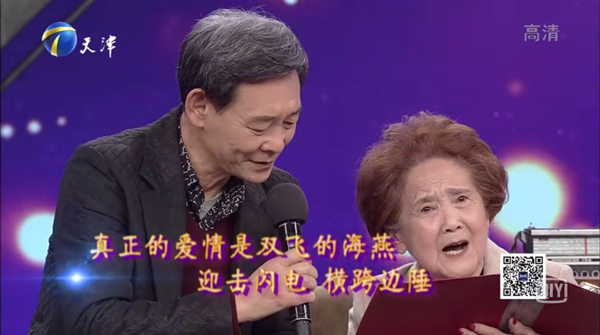 后来有个节目,我打电话给她,我说我肯定去,她就也参加了。那天她打扮得很时尚,穿着浅色的羊绒大衣,那那种气质,时尚,文化底蕴,感觉特别到位。我们在节目当中大家互动得特别好,她在现场还朗诵了自己写的一首诗,朗诵得非常好。