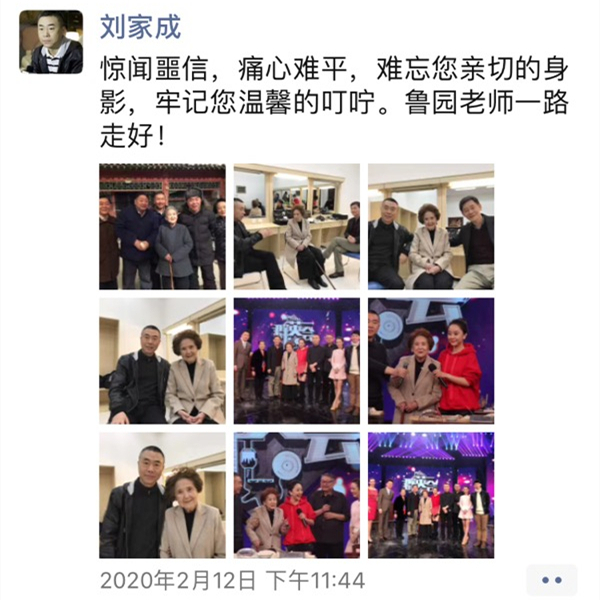 2月12日,与她曾合作《情满四合院》的刘家成导演,发朋友圈悼念鲁园。