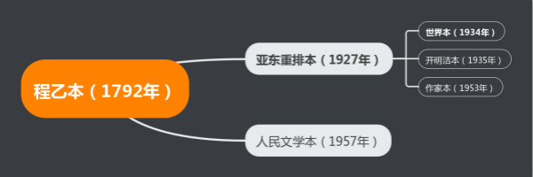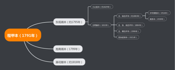程高本系统的版本种类繁多,多达十八种。但它们的母本主要是程甲本和程乙本,后来出版的各种程本基本上都是从这两个版本派生出来。这两个母本的出版时间分别为: