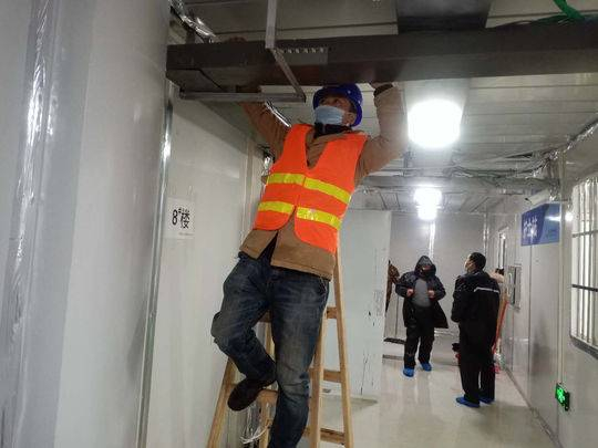 “说实话,累是肯定的,但我们接受的是一项光荣而艰巨的任务,再累也要坚持,也要干好!”严波他们和来自全国各地的工友们,怀揣着对武汉人民的深切关心,肩负着国家赋予他们的光荣使命,开足马力,夜以继日地忙安装、抢工期。据严波介绍,截至2月14日,他们负责的水电安装工作已基本完成。