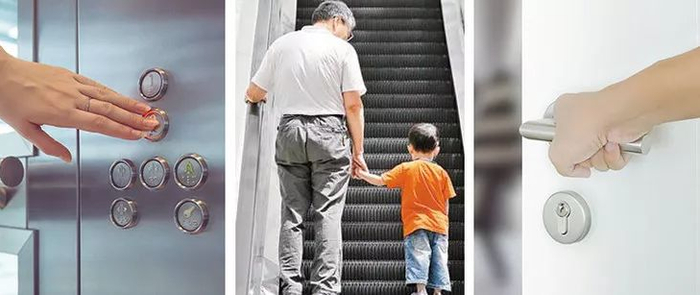 尤其是后者,可能潜伏在各种公共场合,如电梯按钮、扶梯把手、门把手……我们很容易因为手部接触后传播感染。