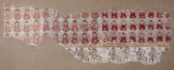 千佛和骑者像壁画 唐代 达玛沟托普鲁克墩2号遗址出土 策勒县达玛沟佛教遗址博物馆藏