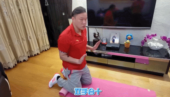钱震华说:“每天坚持在家运动,抗击疫情,我们一起为中国加油!”