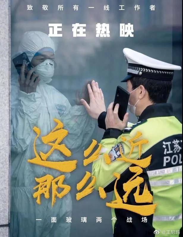 郭鹏也没有料到,这张被徐州警方微信公号采用的照片引发了许多网友的关注。在网上,网友们纷纷转发评论说“他们是这场没有硝烟的战争中真正的英雄”。有网友还将照片做成了电影海报,在海报上注明“这么近、那么远”、“一面玻璃 两个战场”、“致敬所有一线工作者”。