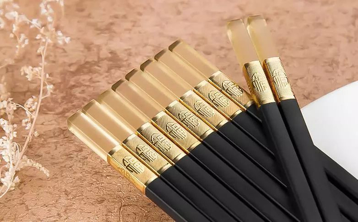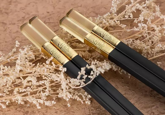 金色的福字镶嵌在筷身,寓意着对美好的向往:吃好了,福运便会旺来!