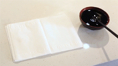 拿沾满酱油的筷子在纸巾上擦,很容易就擦掉污渍了。