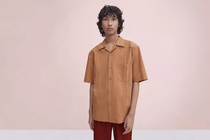 这一季的 U 复刻了经典的古巴领衬衫:轻棉材质,有口袋的可折叠短袖,还有衣服前面的压纹褶皱设计。