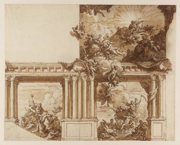 詹姆斯·桑希尔爵士,《罗慕路斯的神化:天花板装饰的草图》,1710年