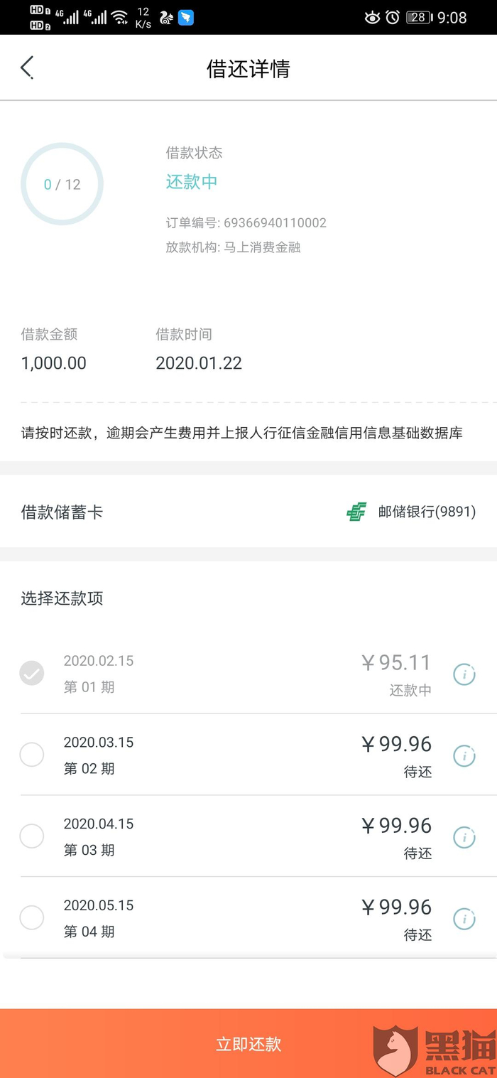 消费者“你大爷不是那个你大爷”在2月15日向黑猫投诉平台反映:“扣款日没有自动扣款,本人主动还款却一直显示还款中,如果到明日未能扣款,将会导致本人逾期,客服电话也打不通,也没有人工客服”