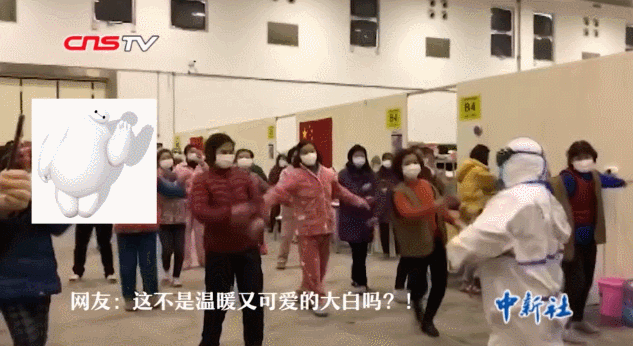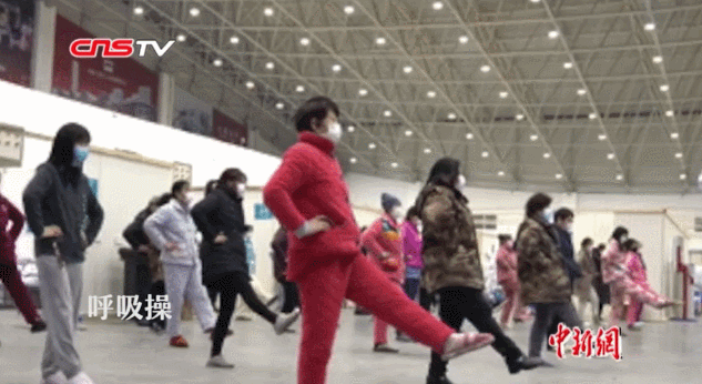 这不,后来在大妈的带领下,很多人开始加入方舱医院广场舞大军: