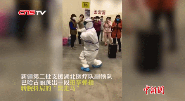 甚至,还有新疆支援湖北医疗队的副领队巴哈古丽跳出了一段特色舞蹈“黑走马”!真是令人惊艳!这广场舞的段位不低啊……