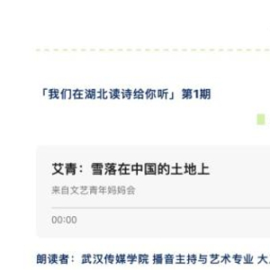 策划、参与“我们在湖北读诗给你听”的是一群身在疫区的湖北师生。除了艾青的《雪落在中国的土地上》,他们还准备了穆旦的《赞美:一个民族已经起来》、闻一多的《我要回来》、冯至的《南方的夜》、海子的《活在珍贵的人间》、洛夫的《风雨之夕》、舒婷的《初春》等作品朗读。