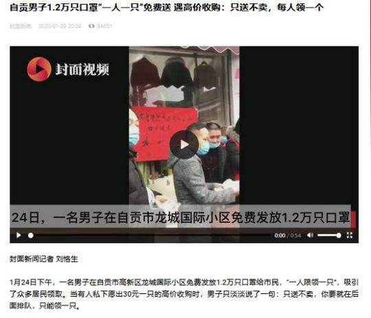 1、食品厂老板的日记:免费送万余口罩“一人限领一只”