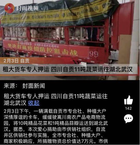自贡16家食品生产企业向支援湖北医疗人员寄送了上百件冷吃兔、火边子牛肉、酱腌菜等特色“盐帮美食”108件,为他们加油。