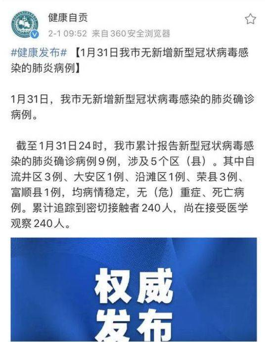 又过3天,自贡新增2例,截至1月30日24时,累计报告确诊病例9例。