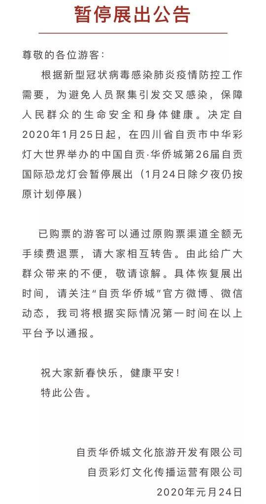 连续举办了26届的自贡灯会,首次为公众的生命安全和身体健康让路!