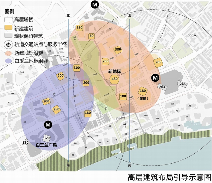 上海市将在北外滩建一栋480米高的上海新地标,围绕这栋新地标还将同时建设1栋380米、1栋300米、10栋180-265米高的大楼,与原有的320米高的白玉兰广场、2栋263米高的大楼,共同组成上海北外滩核心商务区。