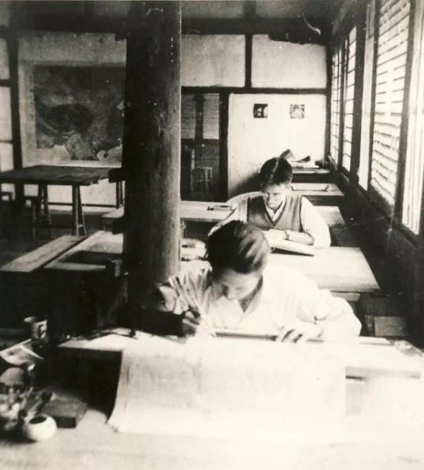 梁思成和莫宗江在李庄营造学社工作室内 来源:中国营造学社纪念馆