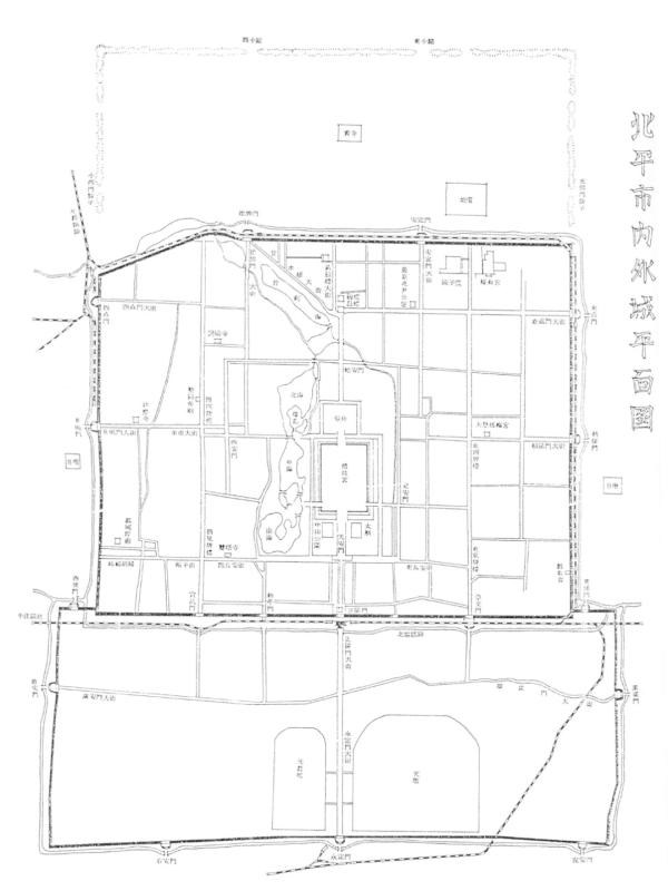 北平市内外城平面图,出处: 王璧文著《元大都城坊考》,中国营造学社出版发行。来源:“北京记忆”官网