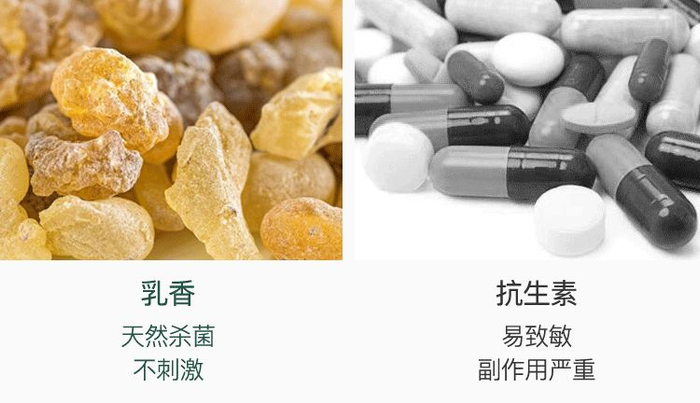 ▲ 乳香,是从乳香黄连木中采取的树胶提取物。比起容易过敏和产生副作用的抗生素,它更加天然不刺激。