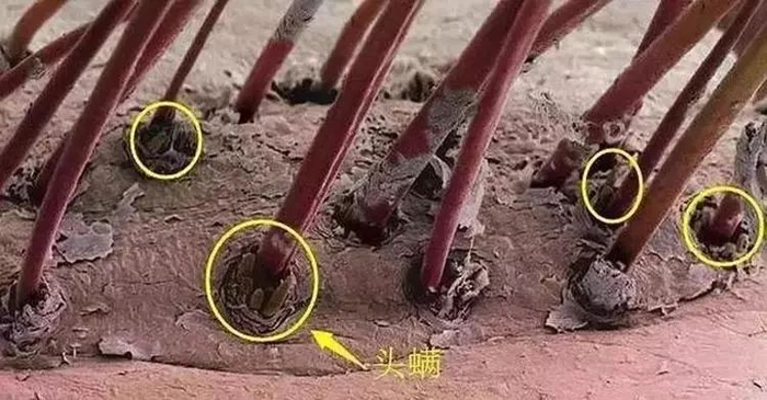头螨这东西就爱藏在头皮上,专靠啃食皮屑、油脂和发根为生。慢慢地毛囊受损,能不痒、不长头屑、不掉发嘛?