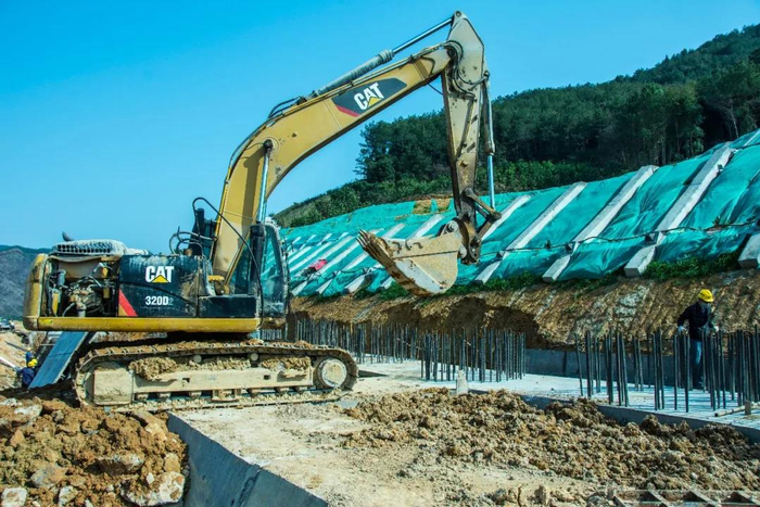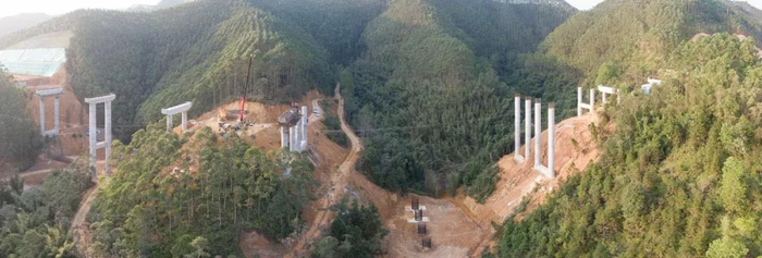 2月19日,在大潮高速TJ16标段路堑边坡防护工程施工现场,多名头戴安全帽、面戴口罩的工人正紧张有序进行抗滑桩连系梁施工,确保在雨季来临之前完成边坡防护工程。不远处,两台挖掘机轰鸣,车臂不停伸缩,正在作业。在大潮高速双溪大桥,同样是热火朝天的景象,工人们正操作架桥机,为接下来左幅引桥建设做准备。