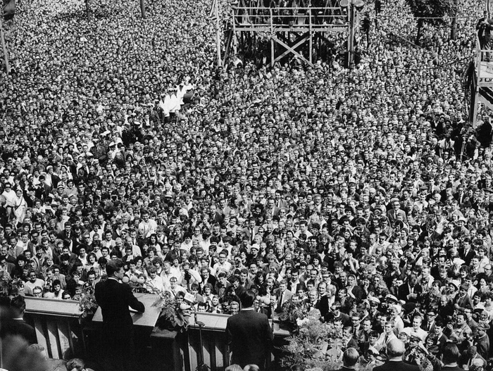 1963年6月26日,约翰·F·肯尼迪在西柏林的市政厅做《我是柏林人》的演讲。