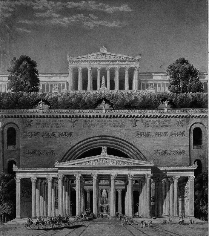 1835年卡尔·弗里德里希·申克尔为皇宫设计的入口(未建成)。