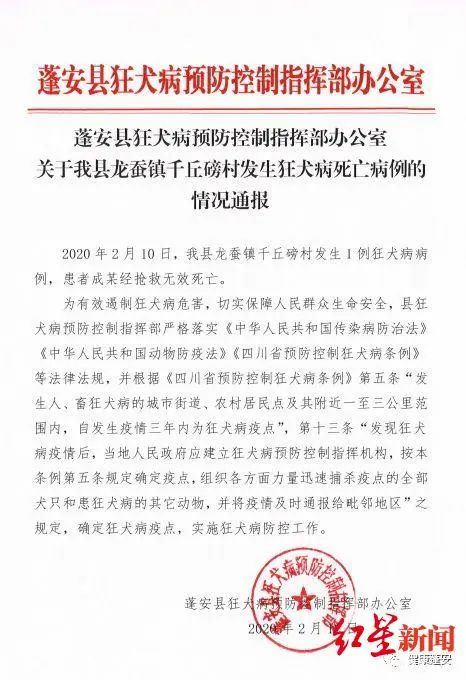 据蓬安县狂犬病预防控制指挥部办公室2月12日的一份情况通报称,