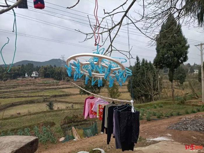 如今,整个家里唯一和萍萍有关的记忆,是挂在院门口核桃树枝上的一个晾晒夹,以前,龙某将萍萍换下的袜子、袖套洗干净后,就夹在上面晒着。