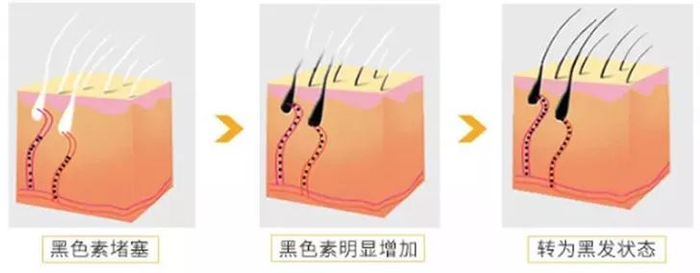 黑发的效果也是长久的,当发根养足了黑色素,生出来的新发都是黑的,不像染发剂那样还会掉色。