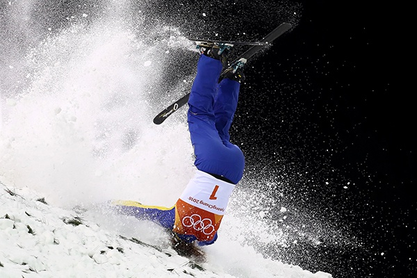 两年前的平昌冬奥会,徐梦桃在自由式滑雪空中技巧第二跳时发生失误,在比赛中摔倒。视觉中国 资料图