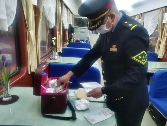 2月20日晚上,潘剑值乘的Z288次列车运行在怀化至株洲间,他一边给怀化站上车的旅客测量体温,一边组织各车厢进行喷洒消毒。一直忙碌到休息时,他才有余暇打开手机看爱人发来的信息。里面是女儿辰辰画的一幅画,她语音留言道:“爸爸,这是送给你的礼物。”画里戴口罩的小女孩在认真洗手,有几个表情凶狠的冠状病毒飘在空中,还有一名身穿战袍的将军拿着针筒。潘剑又高兴又欣慰,马上语音回复:“谢谢宝贝,爸爸打完怪兽就回来啦!”