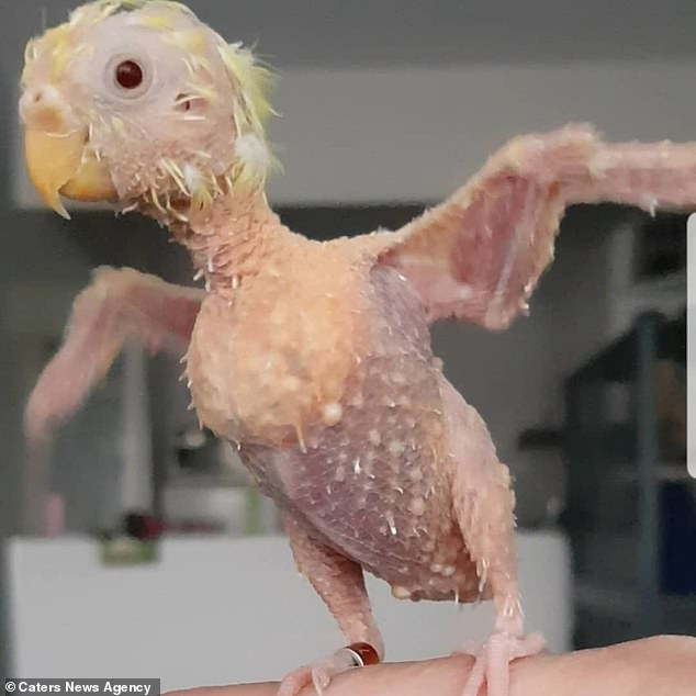 据英国《每日邮报》2月27日报道,居住在荷兰祖特梅尔市的一位名叫纳德拉·本纳尔斯的动物关爱者,日前收养了一只全身没有羽毛的虎皮鹦鹉。本纳尔斯说,这只虎皮鹦鹉是因为遭到前主人的虐待,导致心理压力巨大,致使其患上一种罕见病长不出羽毛。