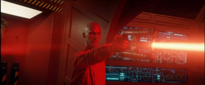 画面当然是一个重要看点。在消费时代,视觉效果已经成为观众接受一部影视剧的重要考量指标。对于《星际迷航》这样一个科幻系列而言当然更是如此。在电影或者电视剧中给予观众新鲜的、陌生的、迥异于现实世界的景象可谓至关重要。缺少了视觉奇观,观众惊颤、刺激这种特殊的愉悦体验便无从谈起。实际上,尽管人们普遍认为,由特技运用而开启电影的视觉奇观时代当属乔治·卢卡斯执导的《星球大战》,但 《星际迷航》的第一部电影也不可忽视。《星际迷航1:无限太空》当年便获得了奥斯卡的最佳视觉效果与最佳美术指导提名。由此可见,在紧随奇观化的潮流,尽可能地消除现实世界与虚拟世界之间的界限这一点上,《星际迷航》系列始终不落人后。