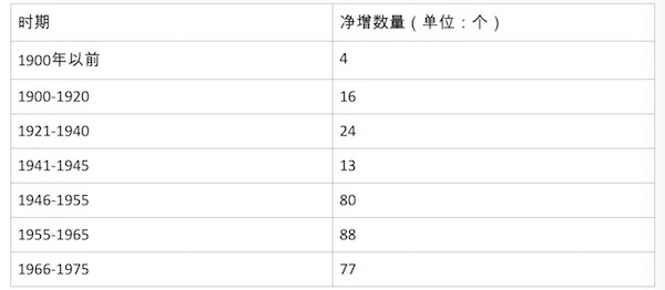 韩国新兴宗教数量增长表(1900-1975)(出处:《이른바 新興宗教》,《东亚日报》,1976年2月12日)