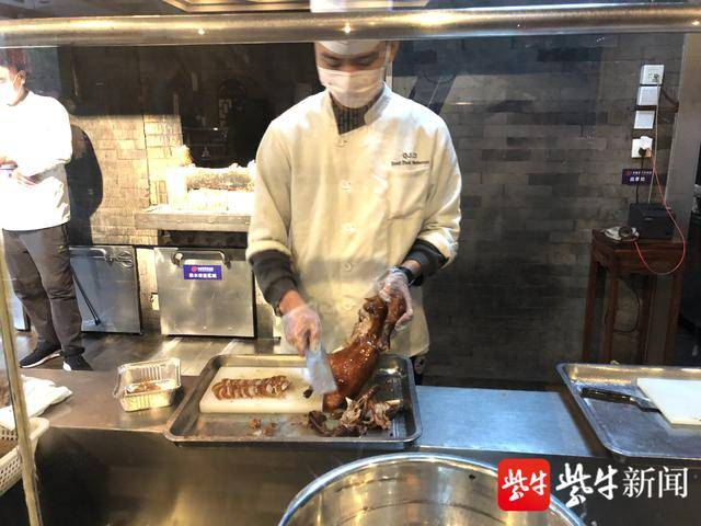 “我们设置了专门的外卖取餐区,避免外卖人员与服务员的接触,对骑手进行体温测量,对未携带口罩的骑手适时提供口罩。我们已申报100人复工,目前采取轮流上班制度,每天36个员工上班,平均每个员工每月上班10天。上班前会进行体温检测和消毒防护,严格防控疫情。”全聚德新区店总经理徐博介绍道。