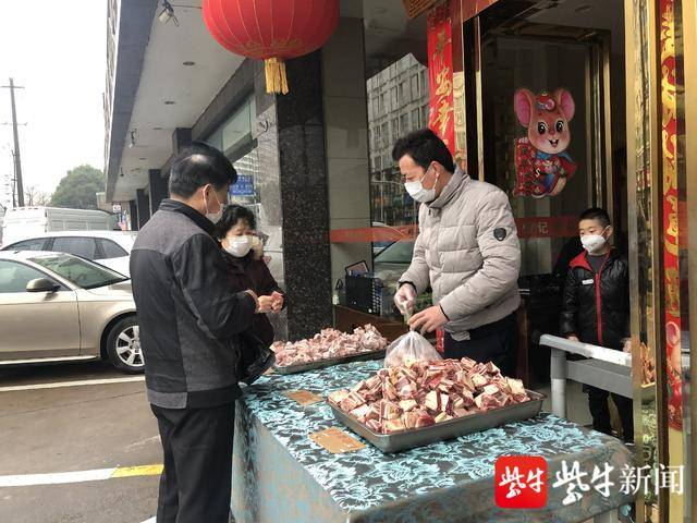 近日,记者在恒记饭店常州新区店门外看到,货架上摆满了猪小排、牛小排、大黄鱼……店员们在饭店门口卖起了菜,不时有居民路过询问购买。