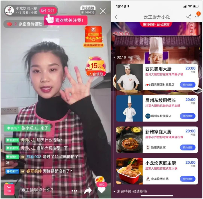 据悉,2月29日晚上7点,淘宝直播间还专门上线了深夜食堂专场,海底捞、辣府、陈艳红火锅、小龙坎、珮姐等网友们呼唤已久的火锅店将会集体开播,总裁高管来到直播间,变身美食主播,一边吃一边向大家介绍特色菜品。