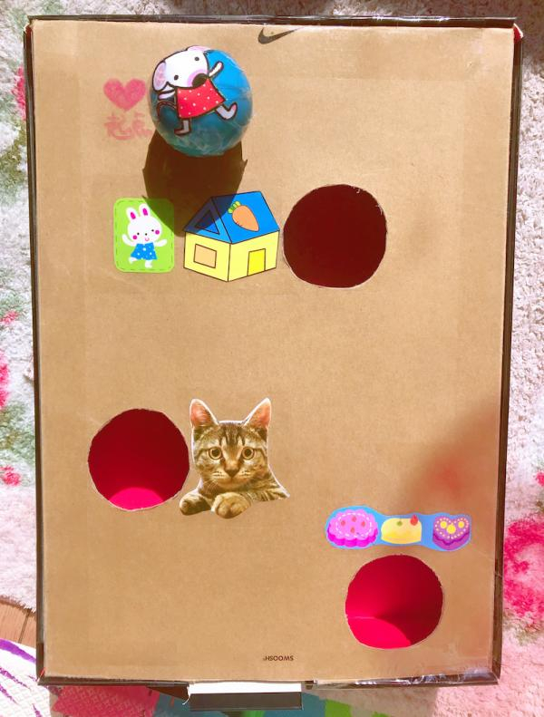 材料:鞋盒、贴纸、剪刀、乒乓球