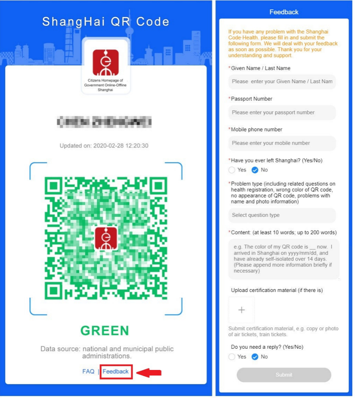 05如果外籍人士对“随申码”的数据准确性有异议,或者使用方面有问题,也可以通过 “我要申诉”留言,我们会尽快为您核实信息,同样也是有英文版。