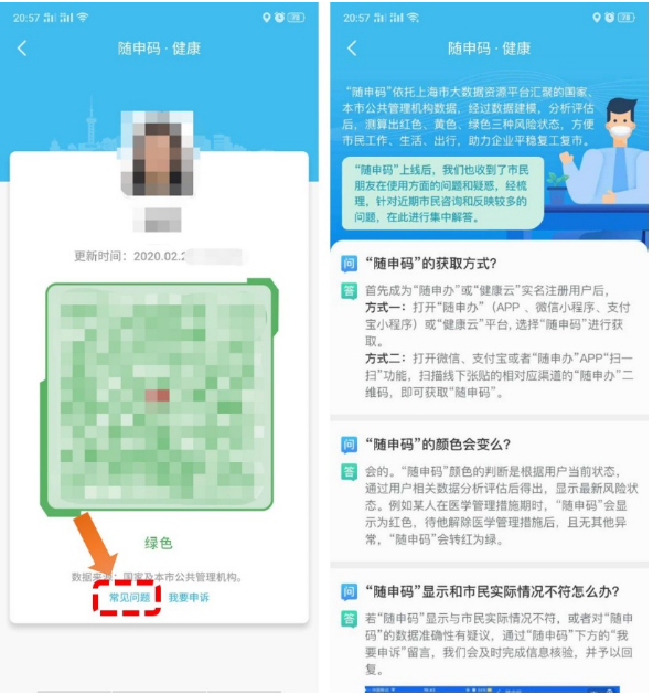 “随申码”上线后,市民们仍然有许多使用上的疑问: