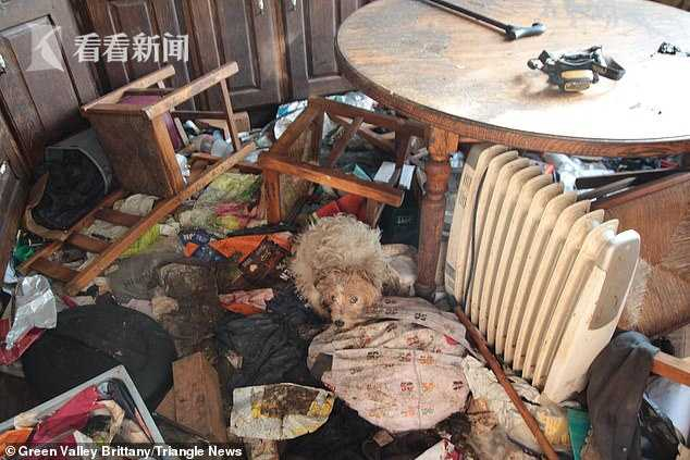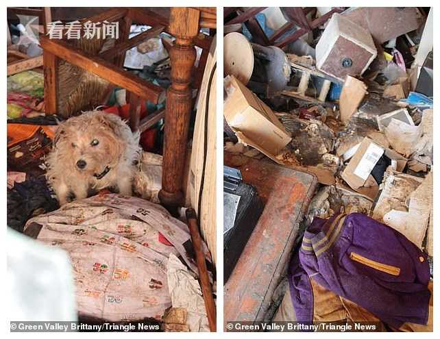 走进房间,屋内垃圾遍地,臭气熏天,无处下脚;房间角落是一堆堆骨头夹杂着乱蓬蓬的头发,十条小狗和四只小猫无精打采地在垃圾堆里翻找着吃的,看上去满脸悲伤和恐惧。救援人员估计,眼前的这种糟糕的场面可能在女主人还在世的时候就形成了,因为一周多点的时间不可能会让房间堆出来那么多垃圾,动物们也不可能饿得瘦骨嶙峋,脚指甲长那么长。