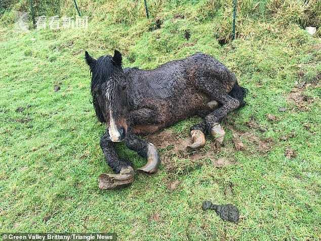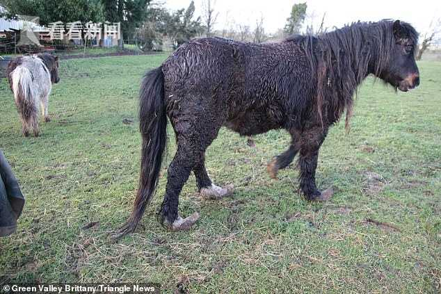 走进农场,动物救援人员被眼前的一幕惊呆了,不少马儿和毛驴的蹄子因为指甲长的太长,根本无法站立,湿漉漉地卧在到处是粪便的草地上,已经饿得奄奄一息。救援人员说,他们从来没有看到过马蹄(马指甲)会长那么长,如果他们那天不来,有一匹马肯定就活不了了,可以想象出这些动物遭了多大的罪,特别是近期还经历了暴风雨的天气。