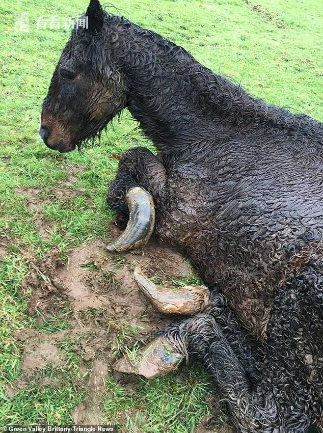 农场废弃动物没人管 马蹄长太长站不住卧地等死