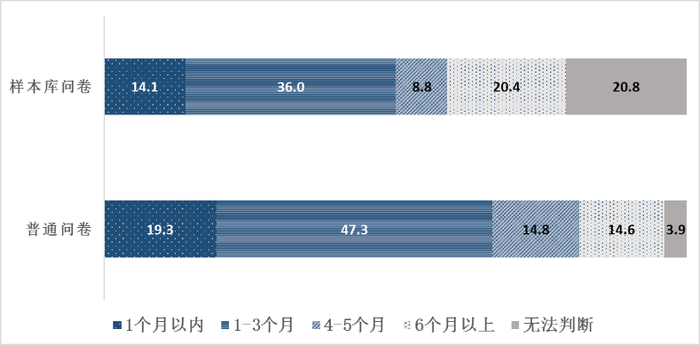 图6:普通问卷与样本库问卷中企业现金流能维持多长时间公司运转的分布比较